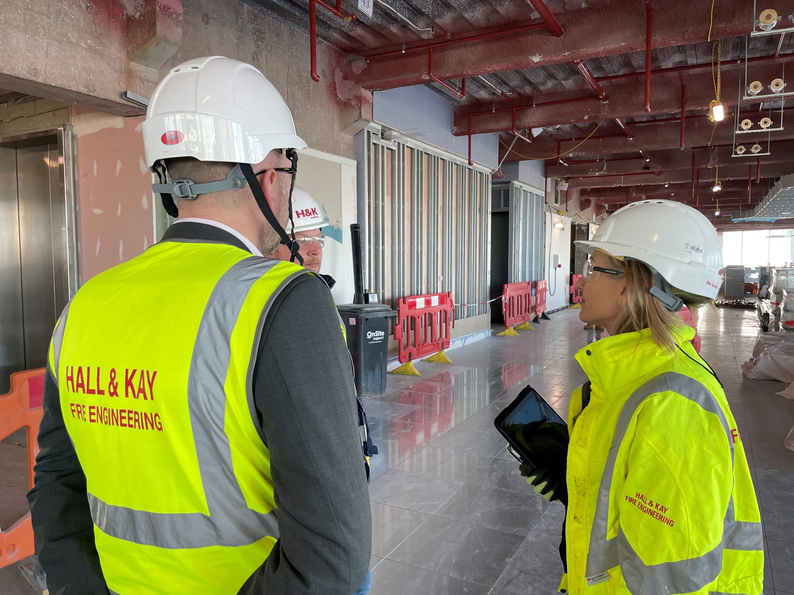 In collaboration with Overbury, our Health & Safety Manager recently hosted a Safety-First event for Hall & Kay London Project teams. This event provided an opportunity to conduct a group safety inspection, discuss the safe practices observed on-site and refocus on the importance of never compromising safety.